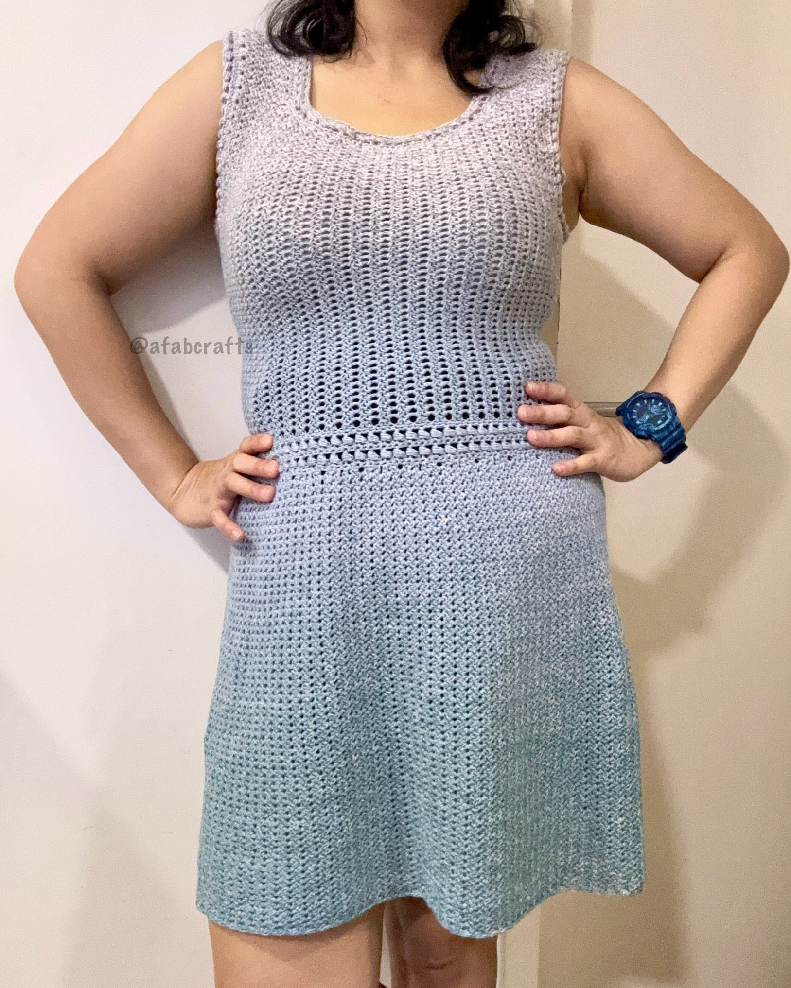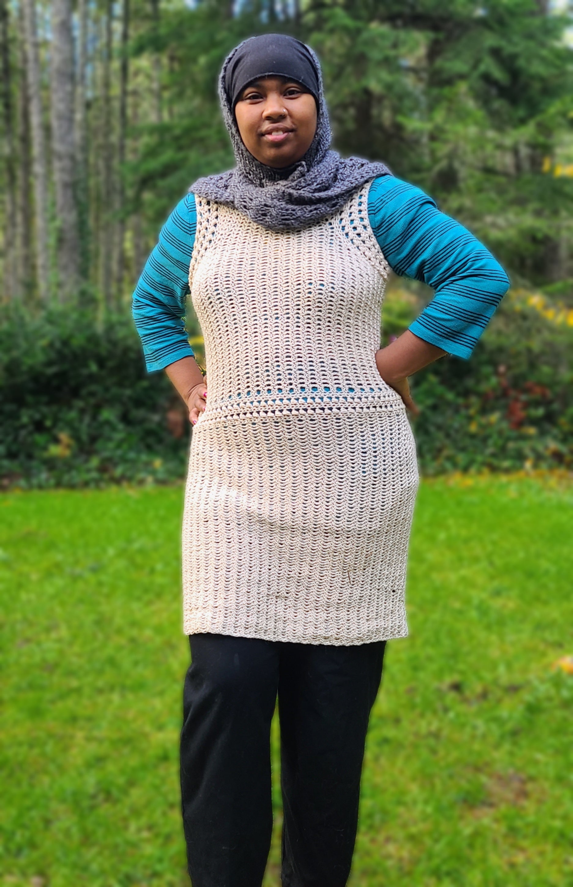 The crochet pattern is made to measure. This means that it is adjustable to any size or length.